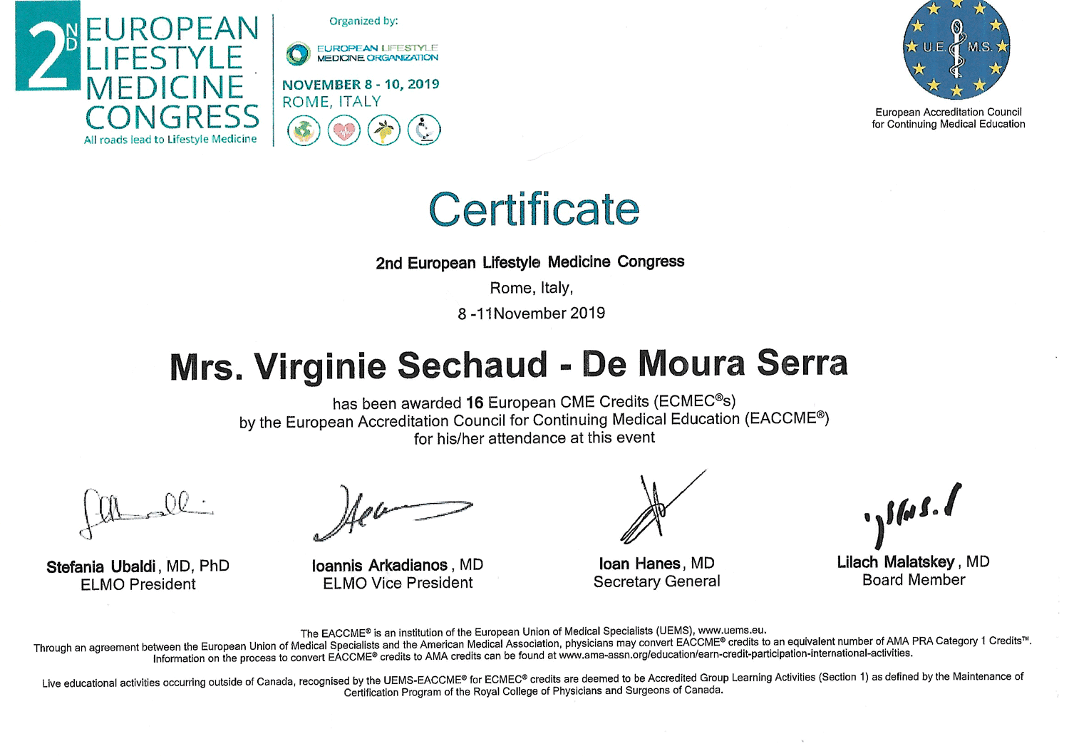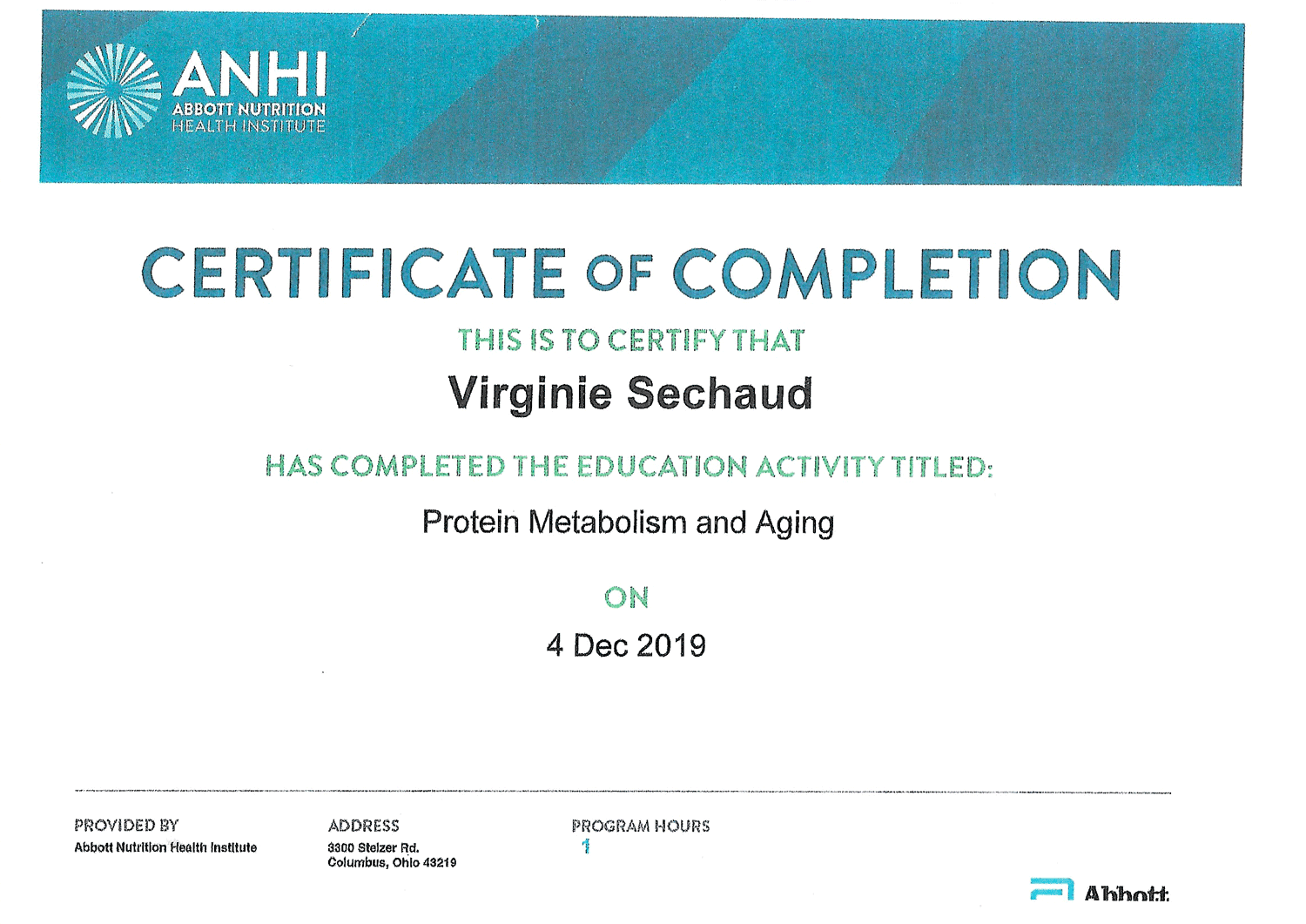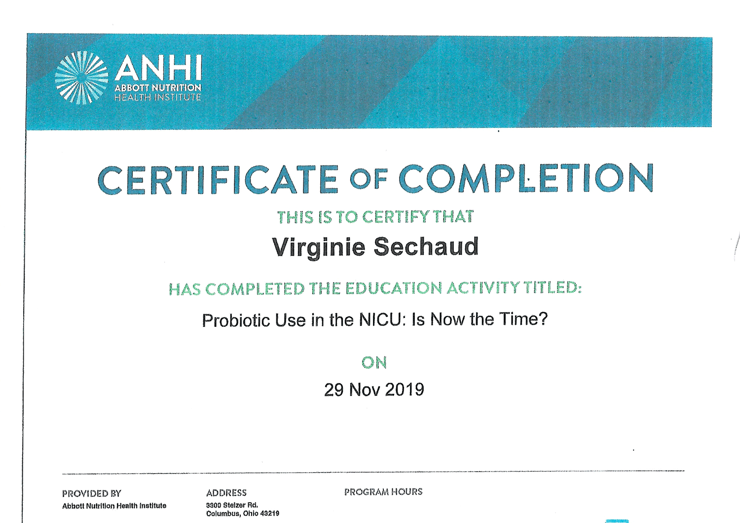 She also holds 2 certificates from the Abbott Nutrition Health Institute on “Protein Metabolism and Aging”, “ Probiotic use in the NICU”, and a certificate on “ Improving your business through a culture of health” from Harvard University – and a Yoga Warrior teacher training certification level 1.